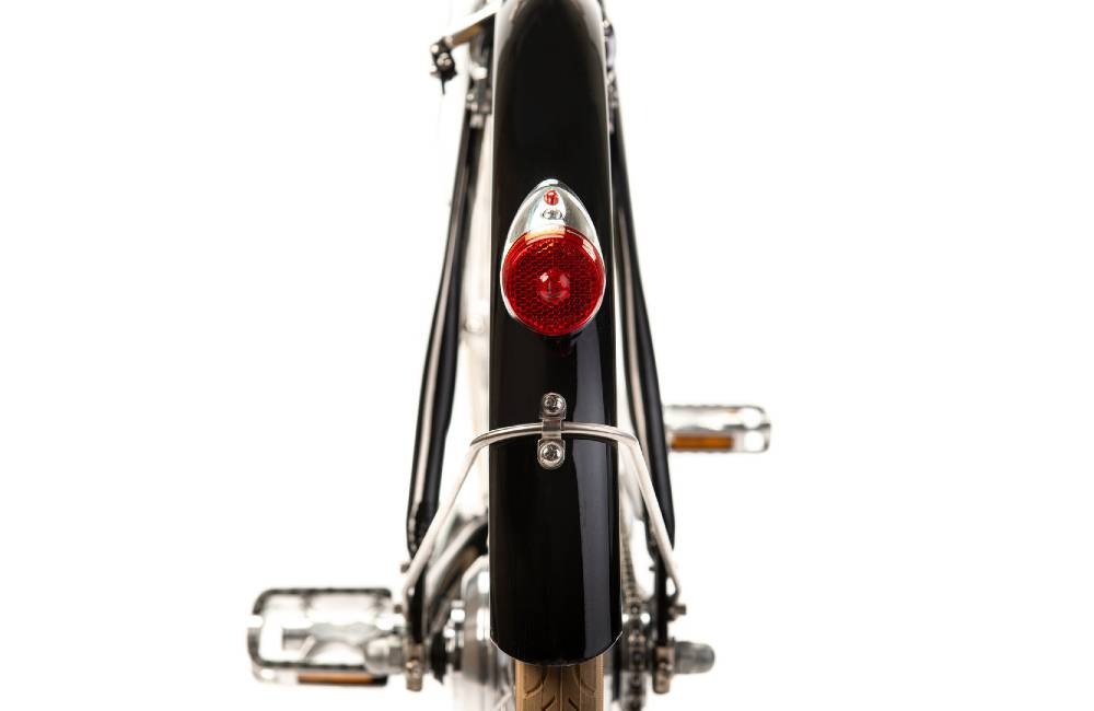 Het frame is gemaakt van zwartgelakt aluminium. Dat maakt de fiets lekker licht, rond de 17,5 KG. Zo kun je er ook zonder trapondersteuning prima op fietsen. De spatborden zijn van metaal en in dezelfde kleur meegelakt. Verder is de fiets is uitgerust met voor- en achterlicht en reflecterende banden waardoor je ook in het donker goed zichtbaar bent. Het stuur en het zadel zijn in hoogte verstelbaar om makkelijk je eigen, meest comfortabele zithouding in te stellen.